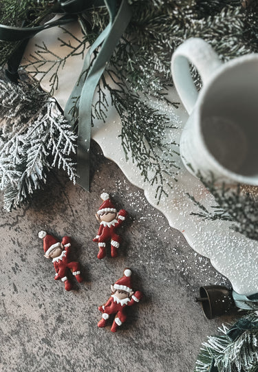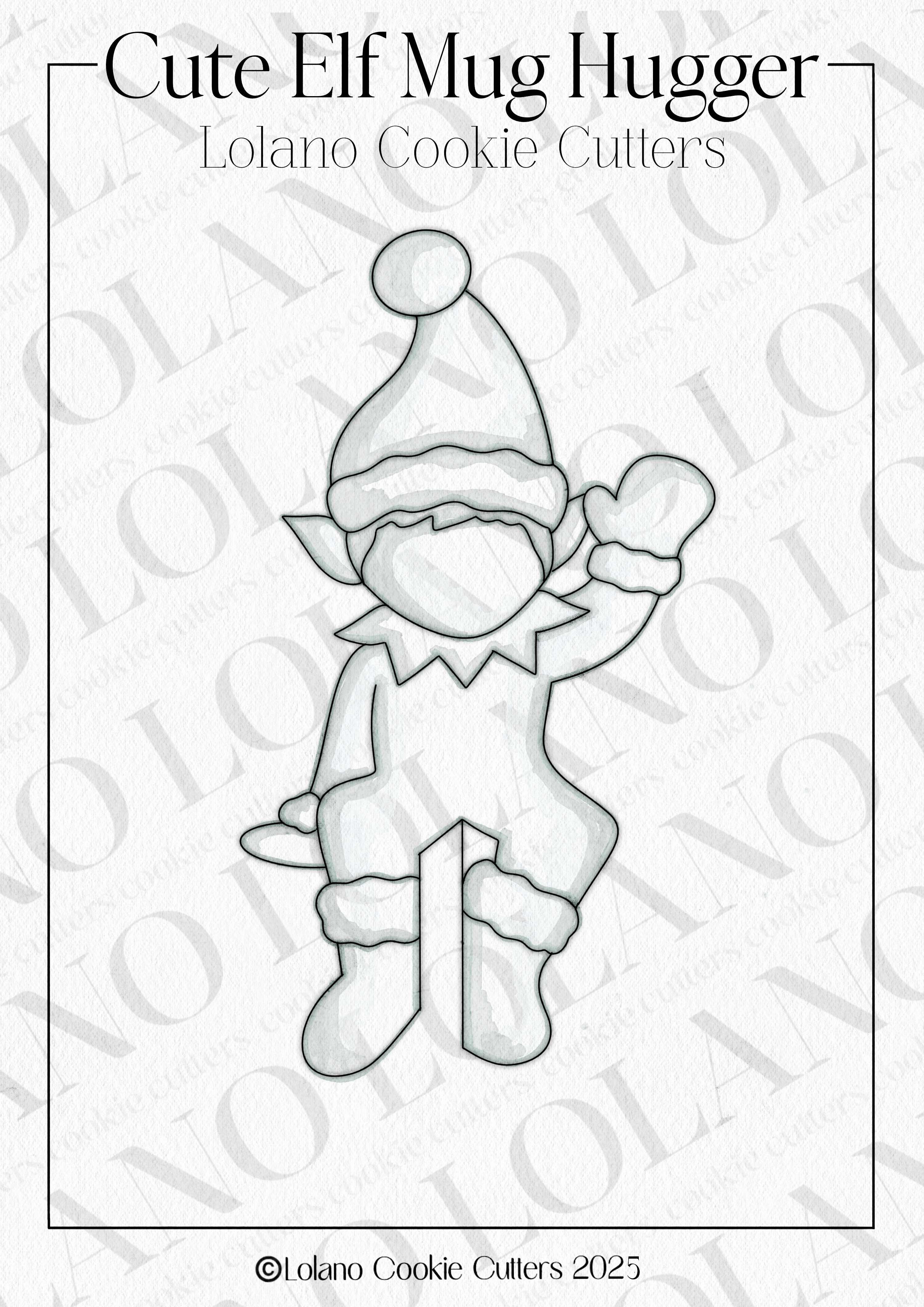Cutters are measured in height, from their top cutting edge to the bottom cutting edge. Mug Hugger is cut with 3/8 inch opening and fits most coffee mugs. Elf cookie stands at 3.0 inch tall.
